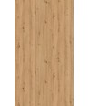 Está recubierto por ambas caras con melamina en diseño Roble Salvaje Natural (H1318), una propuesta decorativa con vetas pronunciadas, tonos miel y ligeros contrastes que evocan la autenticidad de la madera sin tratar. El acabado ST10 (Deepskin Rough) aporta una textura ligeramente rugosa que realza el carácter natural del diseño y mejora su resistencia superficial.